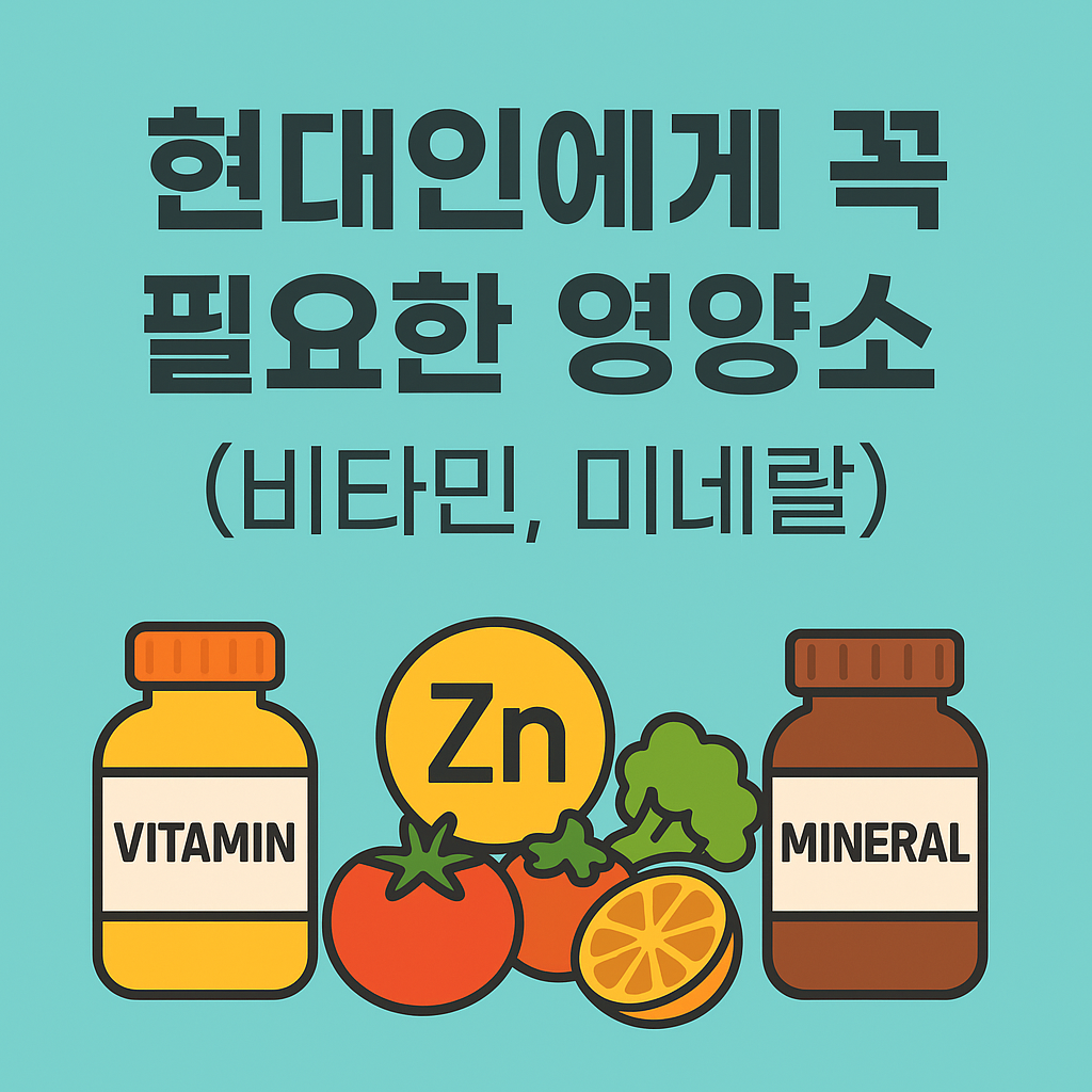 특히 비타민과 미네랄은 체내 합성이 어렵거나 부족하기 쉬워 외부 섭취가 필수입니다.