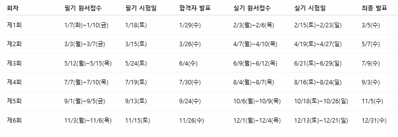2025년 일정을 파악하여 체계적으로 공부하여 성과가 있길 바랍니다.